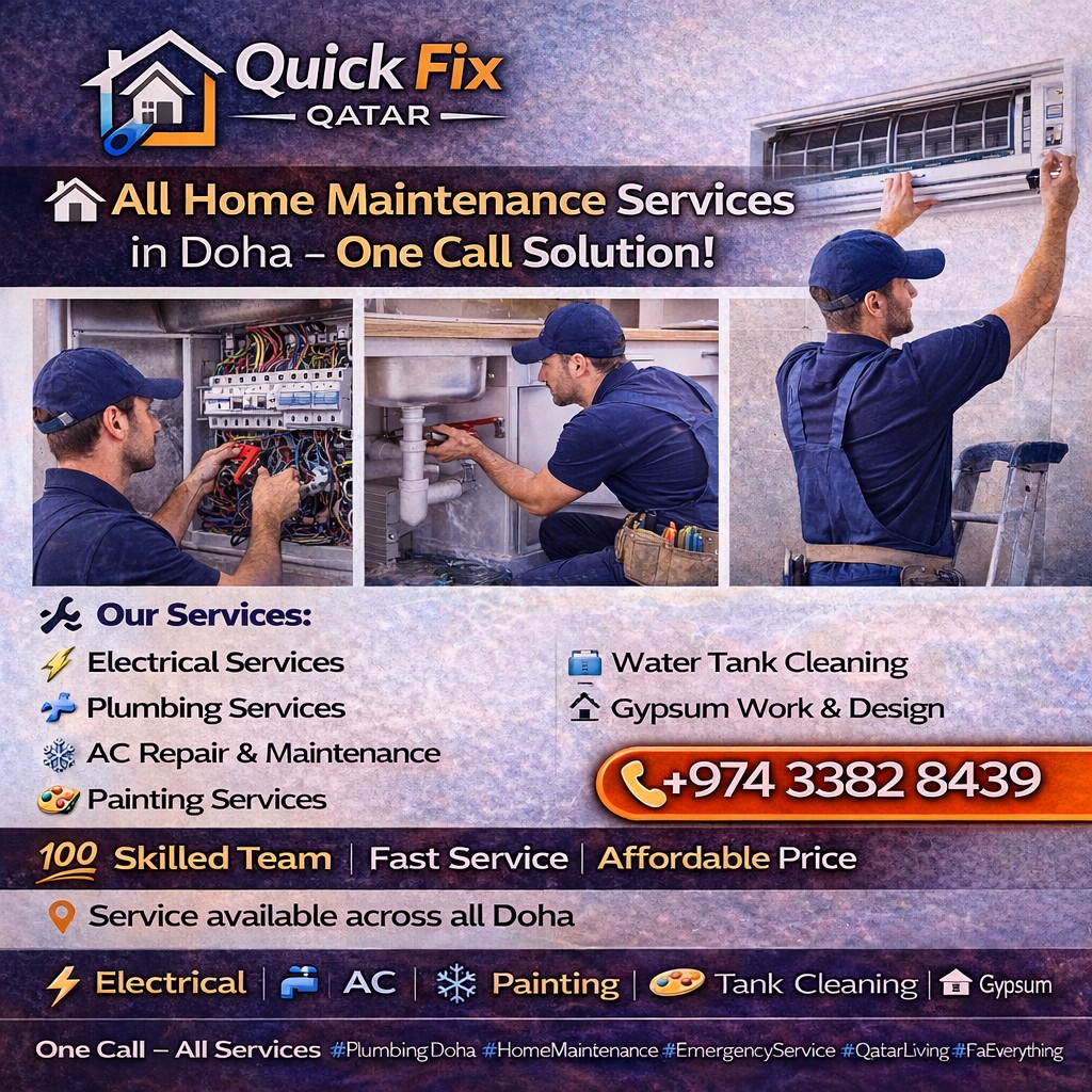 π With Quick Fix Qatar, you get professional, fast, and reliable home maintenance services across Doha.